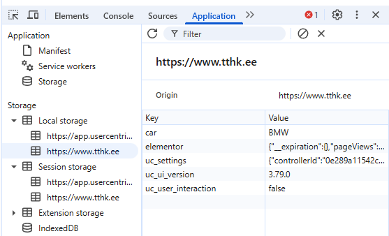 Kuna me salvestame väärtuse „local“ mällu, jääb see alles ka uues vahekaardis „Application“.