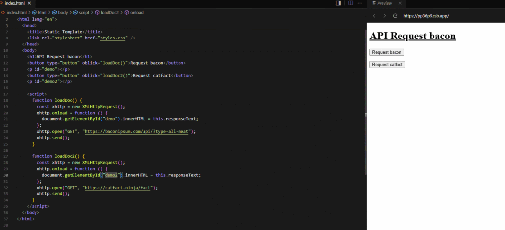 <button type="button" oblick="loadDoc()">Request bacon</button>